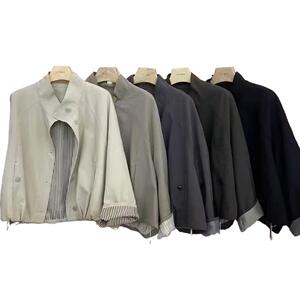 感韩系立领撞色工装外套女秋季新款港风休闲流行夹克上衣米杏色【