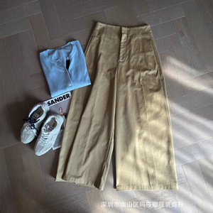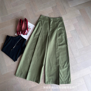 女士阔腿休闲裤女25早秋新款高腰显瘦宽松百搭九分裤绿色百搭女裤
