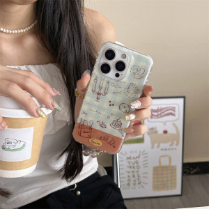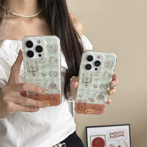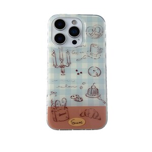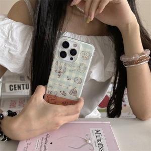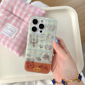 韩系格纹素描碱水面包插画适用iPhone16苹果15ProMax/14/13手机壳