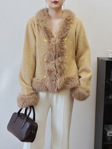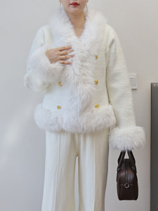 2025秋冬新款小香风拼接毛毛仿水貂绒针织开衫高级感毛衣外套女潮