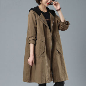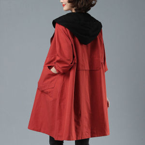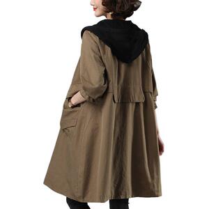 中老年风衣女秋季2025年新款韩版宽松夹克拼接撞色连帽百搭外套女