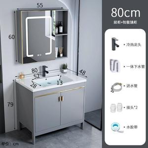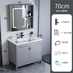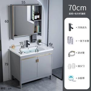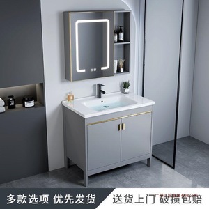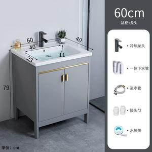 落地洗脸盆台面一体盆卫生间太空铝浴室柜陶瓷一体洗手盆洗漱台柜
