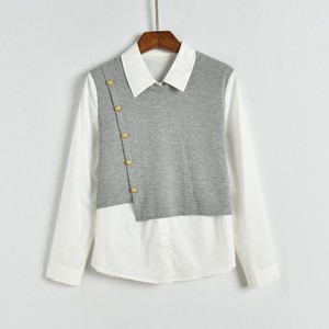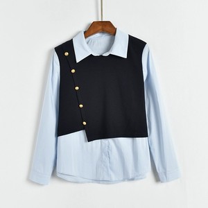 2025秋冬季新款假两件条纹拼接衬衫女设计感小众时尚百搭上衣洋气