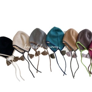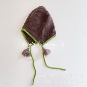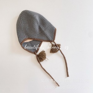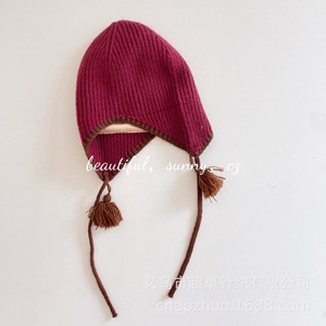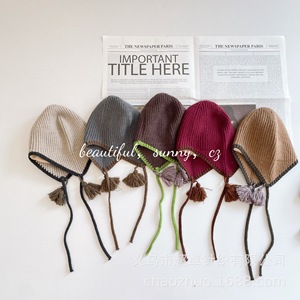 INS风小众设计师同款流苏小辫子撞色边品质款毛线帽儿童护耳帽