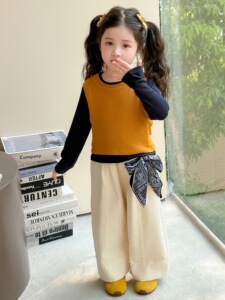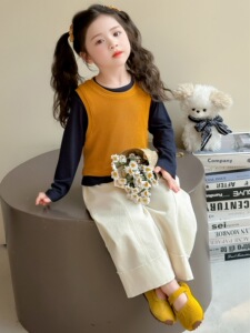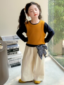 女童时尚马甲三件套2025秋季新款韩版阔腿裤套装网红童装一件代发
