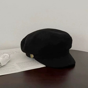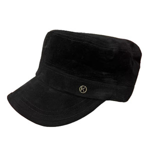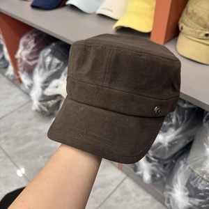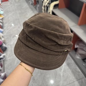 秋冬款保暖百搭显瘦减龄马术帽子女网红k字母徽章绒面平顶鸭舌帽