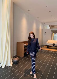 秋季套装女装宽松休闲圆领长袖T恤上衣针织条纹半身裙包臀长裙子