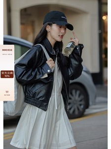 觅定黑色高级感皮衣外套女秋季2025新款设计感短款休闲夹克上衣