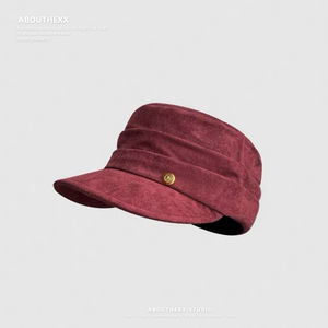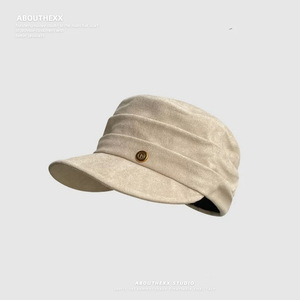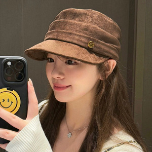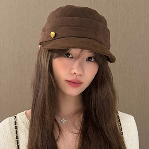 2025秋冬新款麂皮绒帽子女平顶复古马术帽百搭八角帽显脸小报童帽