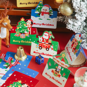 欢喜圣诞ins风折叠小贺卡创意复古手写圣诞留言卡送朋友老师卡片