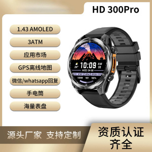 HD300PRO离线地图4Gb大内存应用市场3ATM防水AMOLED蓝牙智能手表