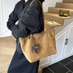 麂皮绒包包女式2025新款潮高级感复古大容量通勤托特包外出单肩包