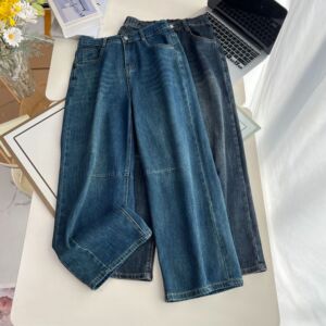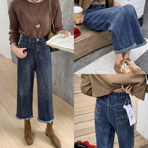 秋季新款200斤胖妹妹简约高腰弹力牛仔裤大码女装休闲直筒裤8128