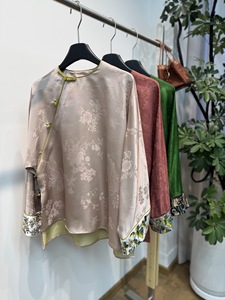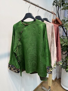 2025早秋新款真丝国风上衣三色年轻版新中式圆领斜襟盘扣长袖衬衫