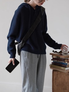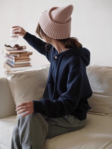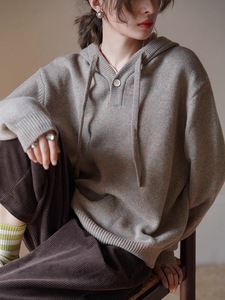 「白描」美丽诺羊毛 轻复古慵懒宽松针织连帽卫衣毛衣