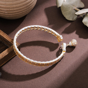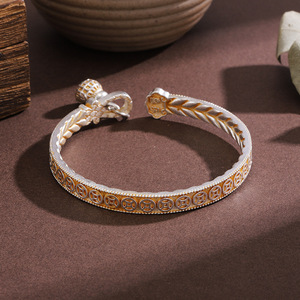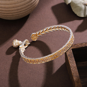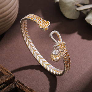 白铜镀银描金手镯梅花手镯铜钱手环国风手镯葫芦发财麦穗镯子礼物