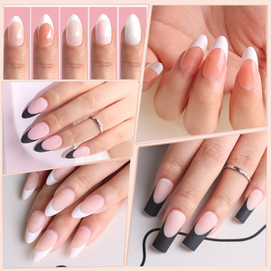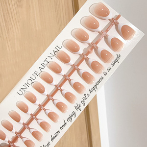 跨境裸色法式甲片懒人预支甲片假指甲欧魅杏仁甲穿戴甲手工甲片