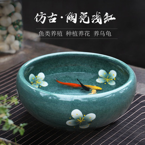 陶瓷鱼缸客厅小型家用桌面古法生态养鱼盆睡莲盆缸观背青鳉乌龟缸