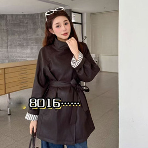 2025早秋新款韩版时尚翻领长袖中长款皮衣外套女宽松显瘦百搭上衣