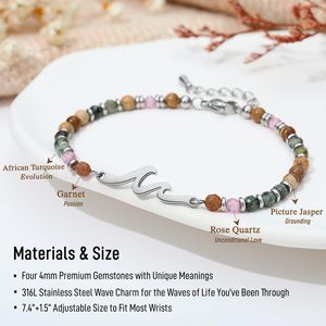 松石波浪手链不锈钢海浪切角珠水晶松石可调节手链图画石海浪手链