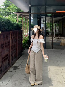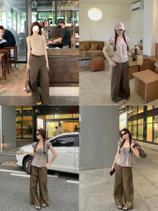 乌77慵懒风简约垂感阔腿休闲裤女高级感百搭宽松直筒高腰长裤秋季