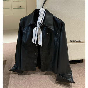 WGWE6952不一样的嗲精feu 复古皮衣正肩收腰短款外套