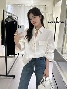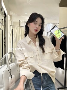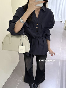 thel limon柠檬绿茶秋季法式风设计感系带收腰系绳翻领长袖衬衫女