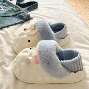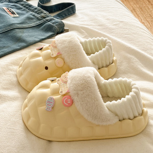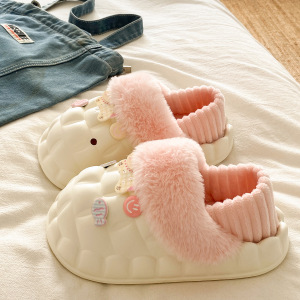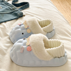 加绒棉鞋保暖EVA踩屎感居家用月子鞋防滑可外穿学生包跟棉拖鞋女