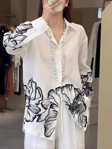 2025秋季新款法式时尚气质款水墨印花宽松休闲设计感长袖衬衫上衣