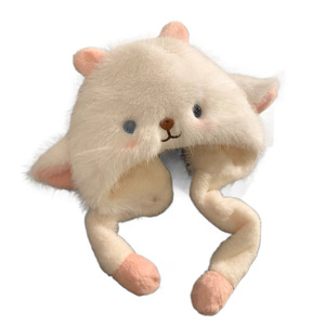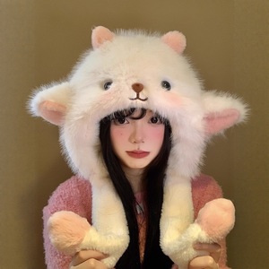 耳朵会动小羊毛绒帽子女冬季可爱加厚保暖防寒护耳帽显脸小雷锋帽