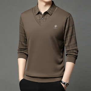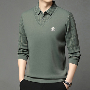 2025秋季新款爸爸装假两件男士潮流POLO衫时尚休闲打底衫男装