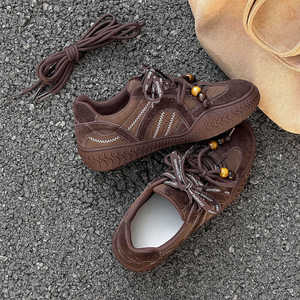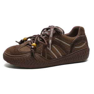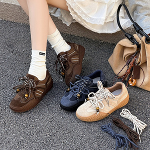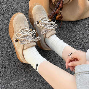 美拉德风复古德训鞋女2025新款牛反绒厚底休闲运动板鞋时尚单鞋