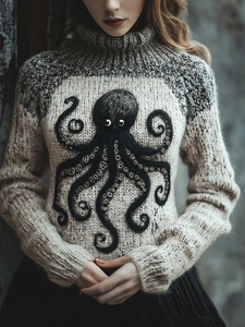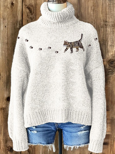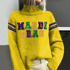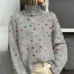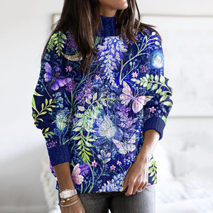 新款欧美跨境秋冬宽松高领上衣休闲落肩高领女装粗针 仿毛衣
