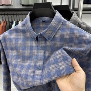 中年男士商务休闲长袖格子衬衫秋冬季新款简约时尚男装纯棉衬衣