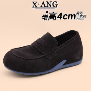 牛皮版全包勃肯鞋4cm内增高女鞋一脚蹬软底休闲单鞋乐福鞋豆豆鞋