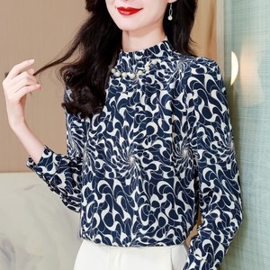 时尚设计感立领印花长袖衬衫女2025秋季新款日常百搭显气质上衣