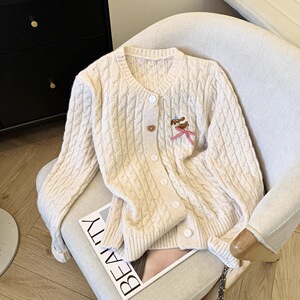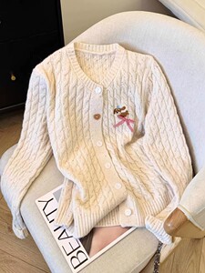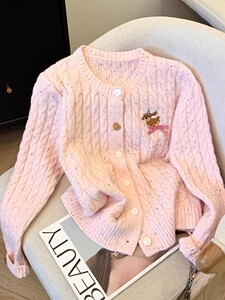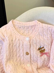 学院风卡通小狗刺绣麻花毛衣外套女秋季新款甜美彩点针织开衫上衣