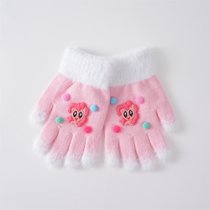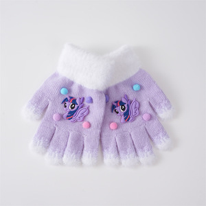 儿童卡通小马加绒保暖全指手套男童女童可爱加绒毛线针织手套批发