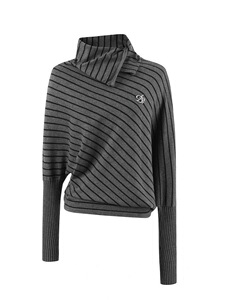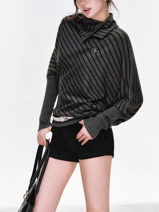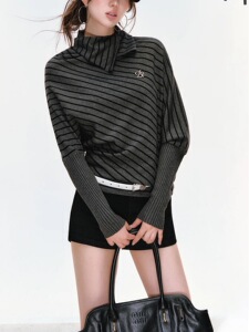 条纹针织翻领毛衣蝙蝠袖古早气质上衣慵懒宽松显瘦罩衫