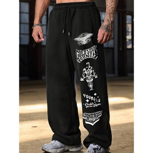 欧美复古潮流印花休闲裤跨境外贸直筒运动卫裤宽松阔腿百搭长裤子
