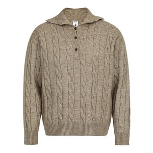 G216复古高级感中性翻领毛衣老钱风设计潮流男式宽松长袖针织衫