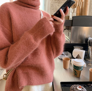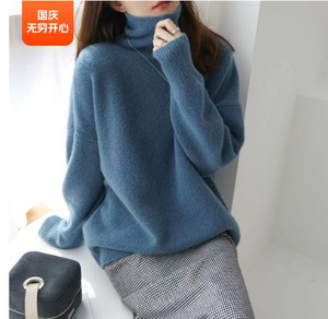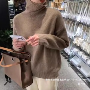 厂家直销原版多色慵懒风重磅高领宽松针织衫女秋冬新款软糯内搭打