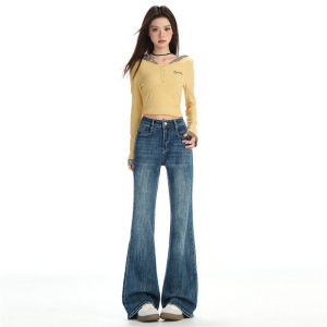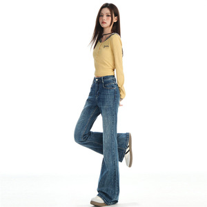 复古蓝微喇牛仔裤女2025年秋冬新款弹力修身提臀显瘦马蹄喇叭裤子
