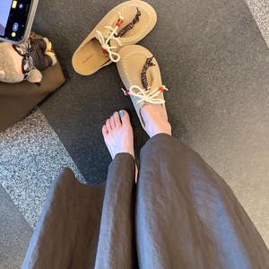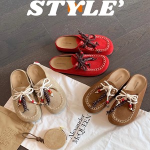 葡萄妈同款现货~ 时髦真皮大头勃肯系带外穿增高包头半拖鞋女春秋