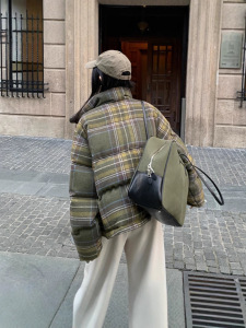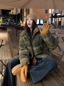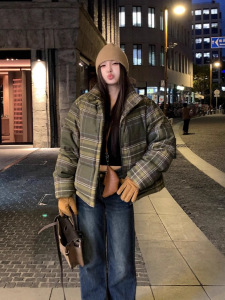 2025年冬季新款短款立领棉服女时尚休闲小个子加厚保暖格子外套潮