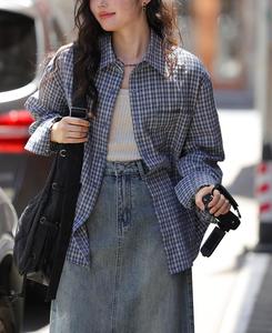 长袖格子衬衫外套女早秋新款设计感小众韩系气质防晒衬衣宽松上衣
