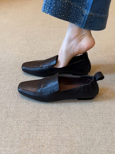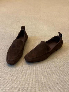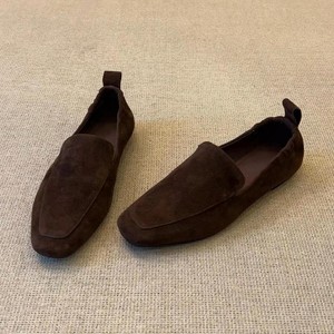 方头乐福鞋女秋季软皮舒适平底一脚蹬懒人鞋百搭休闲麂皮绒单鞋