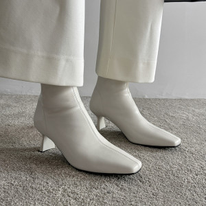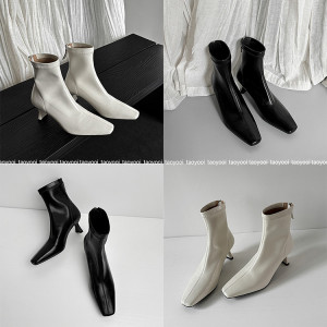 瘦瘦靴女弹力靴子秋冬新款皮革方头细高跟靴后拉链弹力短靴女靴潮