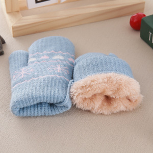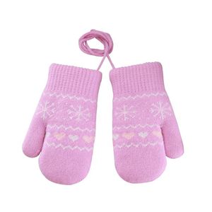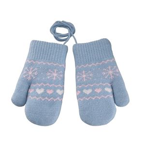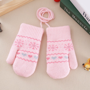 0-3岁爱心雪花冬季儿童保暖手套双层加绒加厚男女宝户外保暖防寒