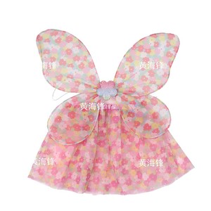 新款儿童蝴蝶结翅膀可爱俏皮蓬蓬裙女童俩件套舞台服饰道具套装